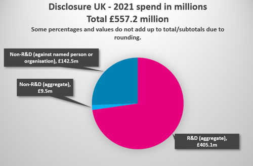A total of 139 pharmaceutical companies disclosed 2021 data via Disclosure UK, up from 131 the previous year.
