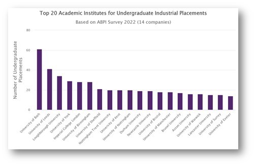 • Undergraduate placements in the pharmaceutical industry have increased by more than 16% since 2019 at 697, although slightly down on the all-time high of 704 in 2017.